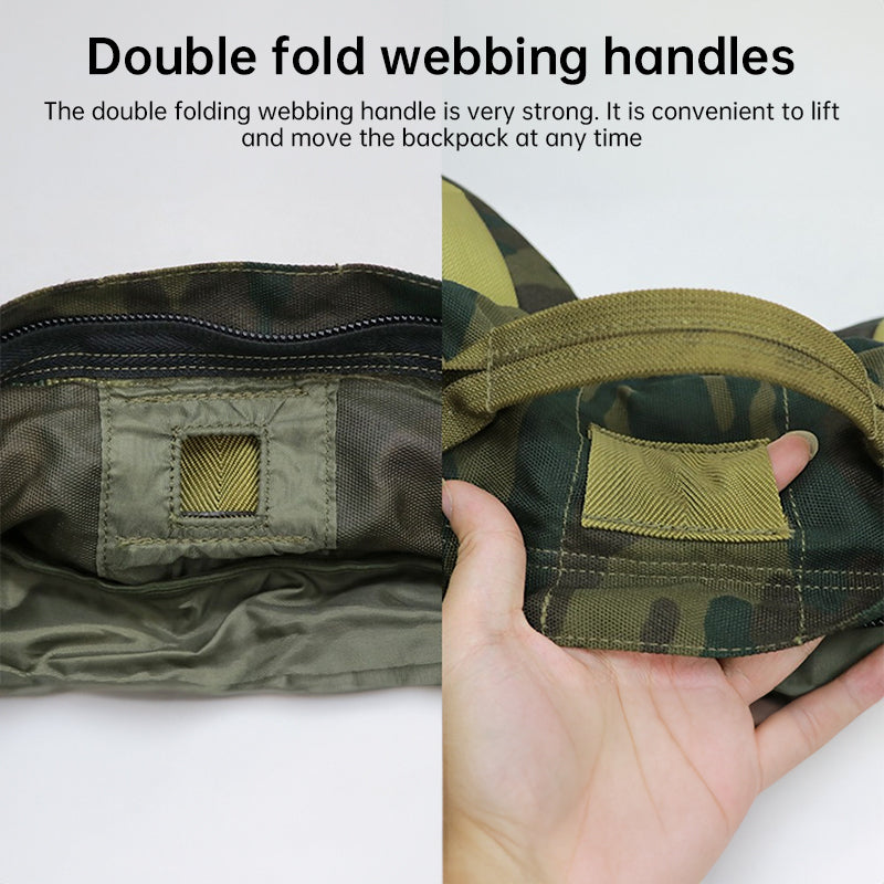 - It has an antenna output hole/drinking water system through - hole with a top cover plate on the top of the main compartment, and a double - folded webbing handle for easy carrying.